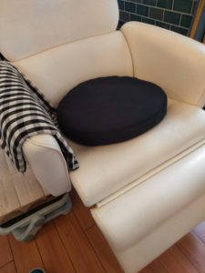 シャンプー台の椅子に置いているクッション(座布団)を2種類用意しています。