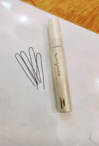 二つ目の方法は下の写真に写っている毛ピンと呼ばれる小さくて細いピンで落ちてくる毛をまとめる方法